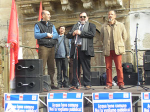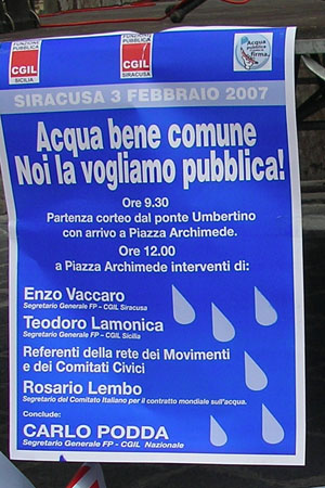 e già ci sono state numerosissime adesioni. Stiamo capendo che se perdiamo sull’acqua, perderemo sulla sanità, sulla scuola, sui diritti dei cittadini. 3 febbraio 2007 In piazza Archimede sono le 7 e 30 e cominciano i lavori tecnici per accogliere il corteo che alle 9 e 30 parte dal ponte umbertino. |