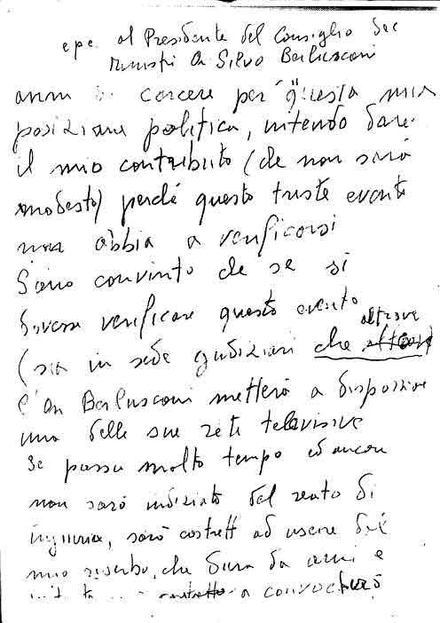 al presidente del Consiglio Silvio Berlusconi e ribadisce la richiesta
